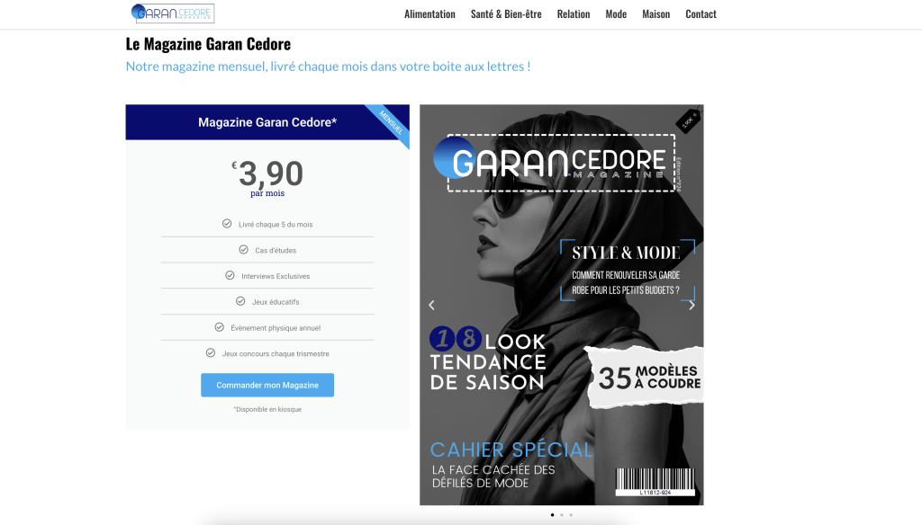 Le site web de Garan Cedore est la partie visible et accessible à tous. On y trouve des articles publiés régulièrement sur les différents thèmes du magazine. L’esthétique est épurée, centrée sur de belles images et des textes faciles à lire. L’expérience utilisateur est pensée pour être simple et apaisante.